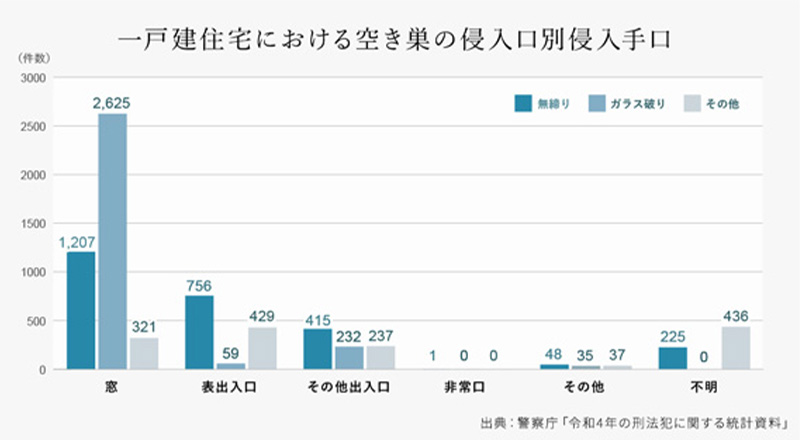 日本の住宅侵入手口に多い『こじ破り』対策にも大変効果的で、官民合同会議の定める"防犯性能の高い建築部品"として認定されています。